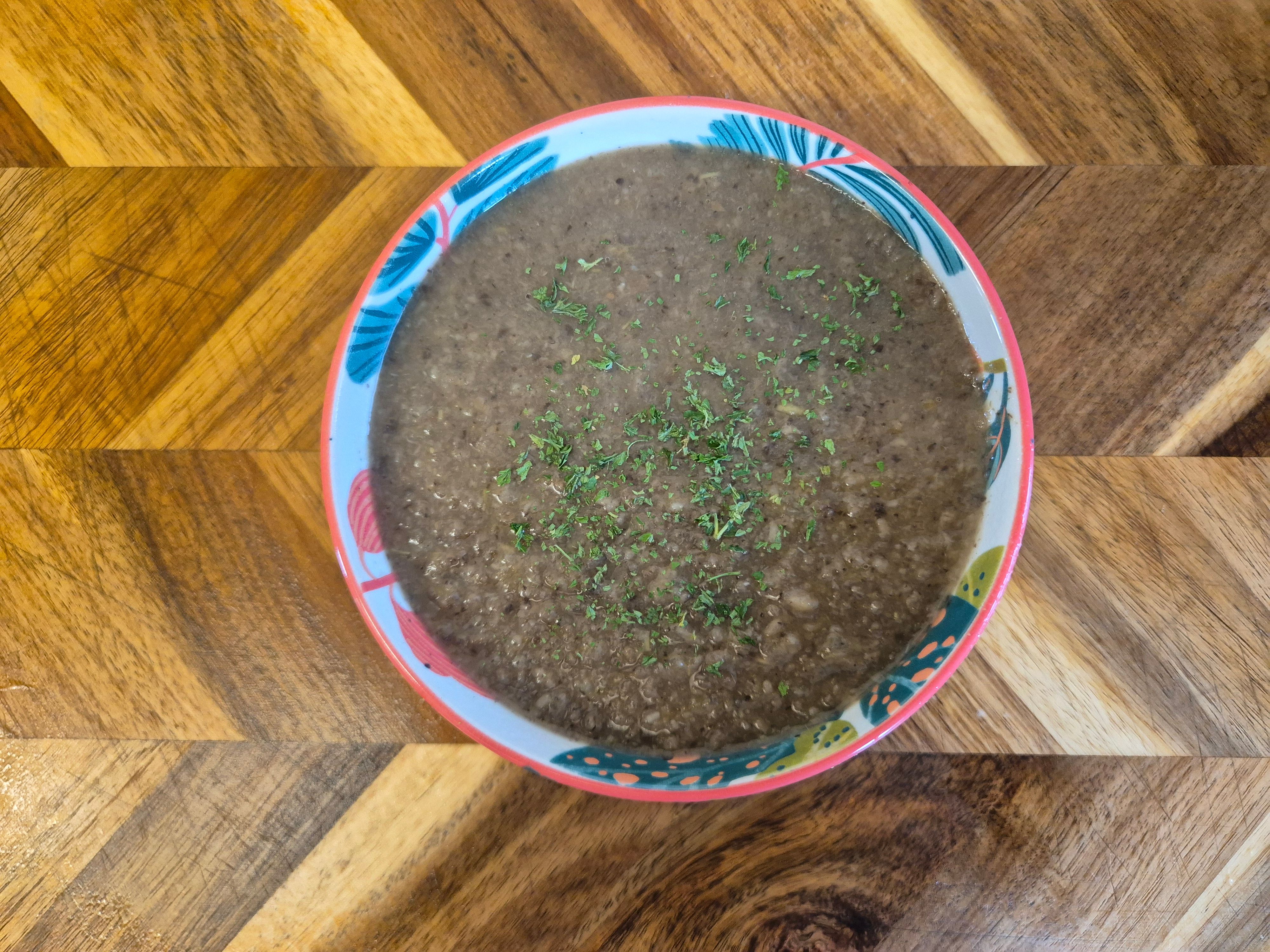 Onions, mushrooms and potatoes. All good things but not as much variety as other soups.